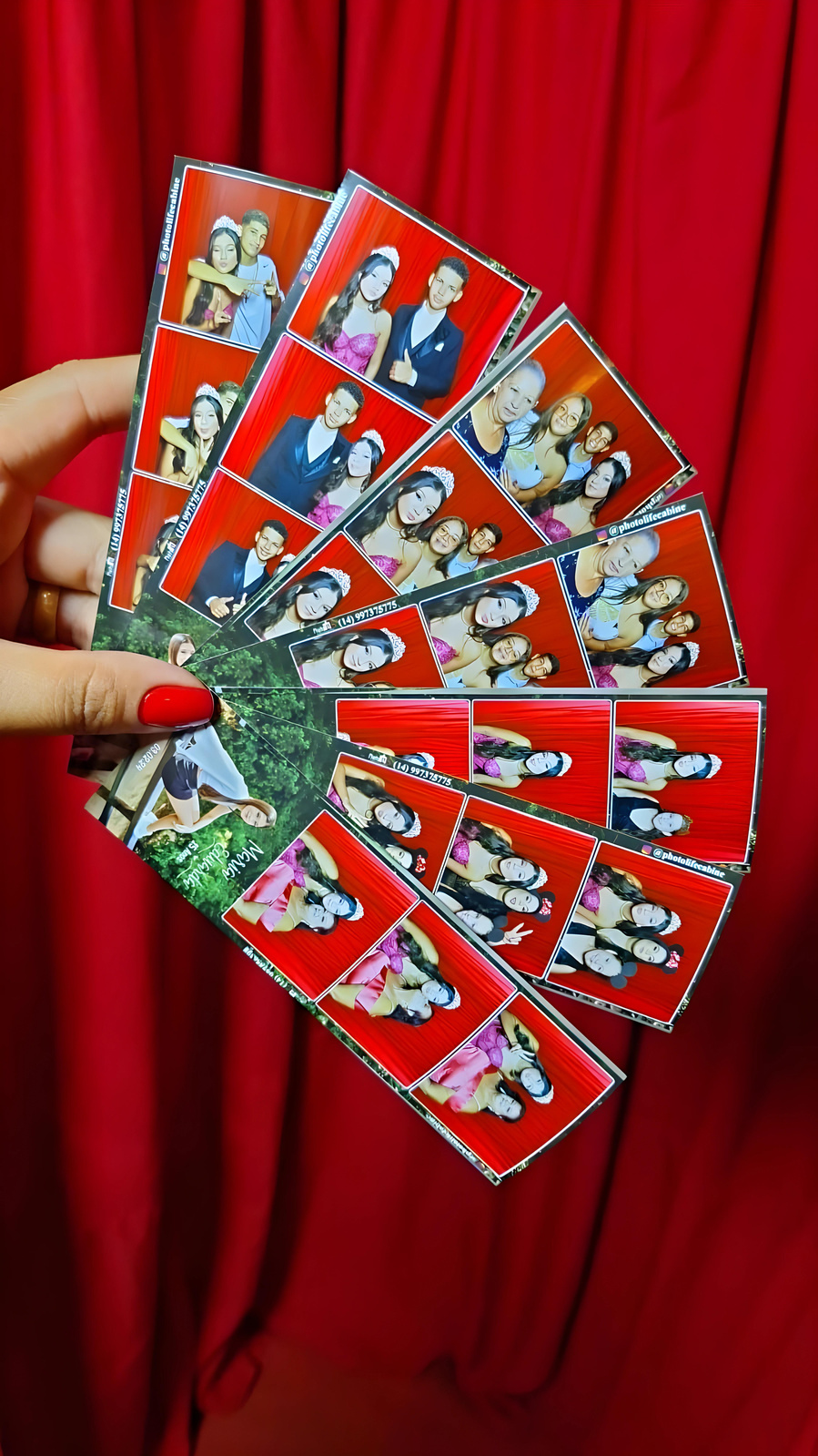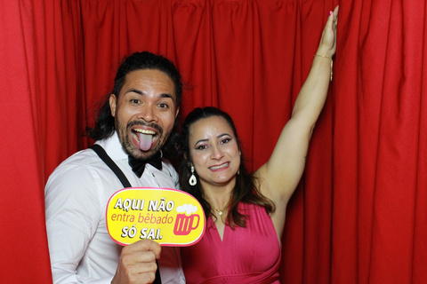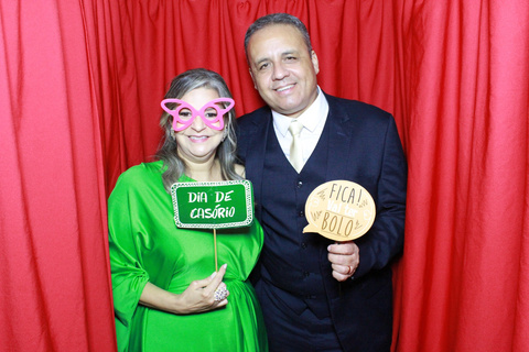 Dentro da cabine, os convidados podem escolher diversos acessórios divertidos, como chapéus, óculos, bigodes e placas com mensagens engraçadas, para tirar suas fotos. Após escolher os adereços, a cabine tira uma sequência de fotos, e você vai ter alguns segundo para realizar várias poses. Essas fotos são impressas na hora, geralmente em formato de tirinhas, que os convidados podem levar como lembrança do evento.